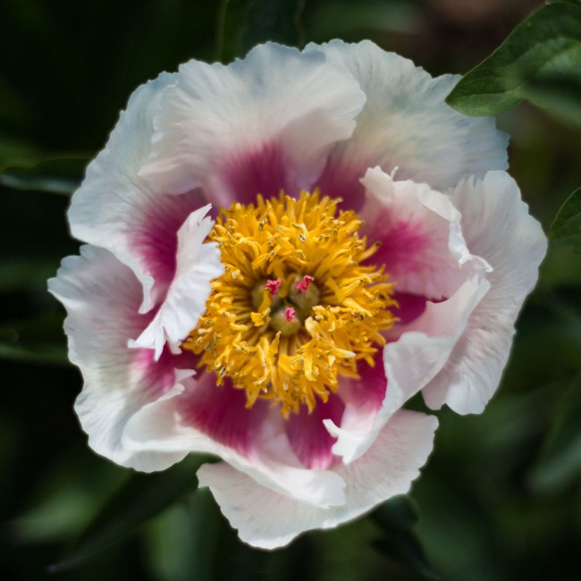 Пион Athena (Афина) – это изысканный сорт, который станет настоящим украшением вашего сада. Его крупные, полумахровые цветы привлекают внимание нежными кремово-розовыми лепестками с легким персиковым оттенком. В центре цветка расположены яркие золотистые тычинки, создающие эффектный контраст и придающие цветку особую элегантность.