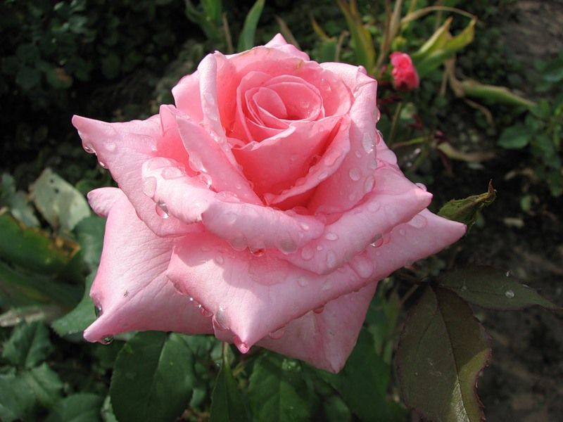 - Цветы: Крупные, махровые цветки нежно-розового цвета с легким персиковым оттенком. Диаметр цветка достигает 11-12 см.